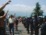 La NATO ha deciso di sospendere il decollo degli aerei diretti sulla Yugoslavia per quelle poche ore che il corteo ha sfilato davanti alla base.