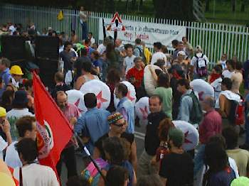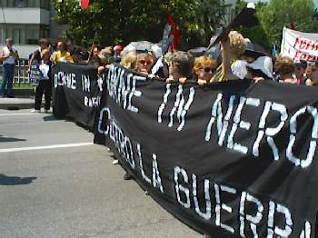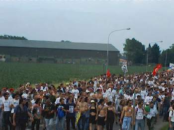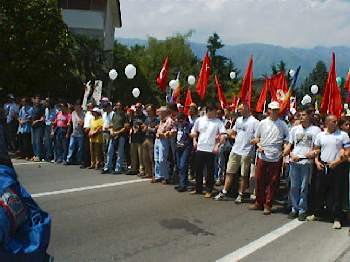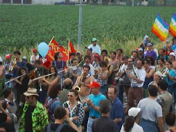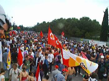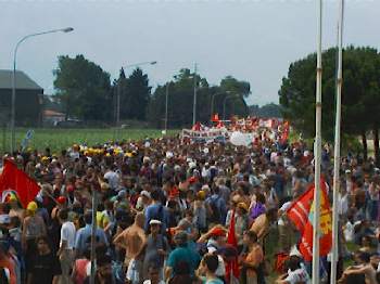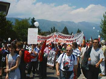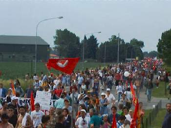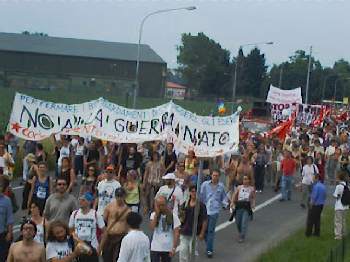 La NATO ha deciso di sospendere il decollo degli aerei diretti sulla Yugoslavia per quelle poche ore che il corteo ha sfilato davanti alla base.